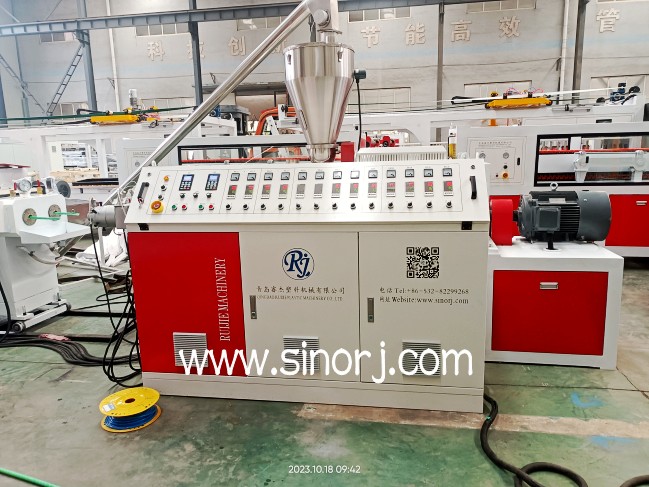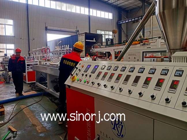 一出二pvc穿線管生產(chǎn)線試機與pvc仿大理石板生產(chǎn)線裝柜發(fā)貨同時進行中。。。。。。